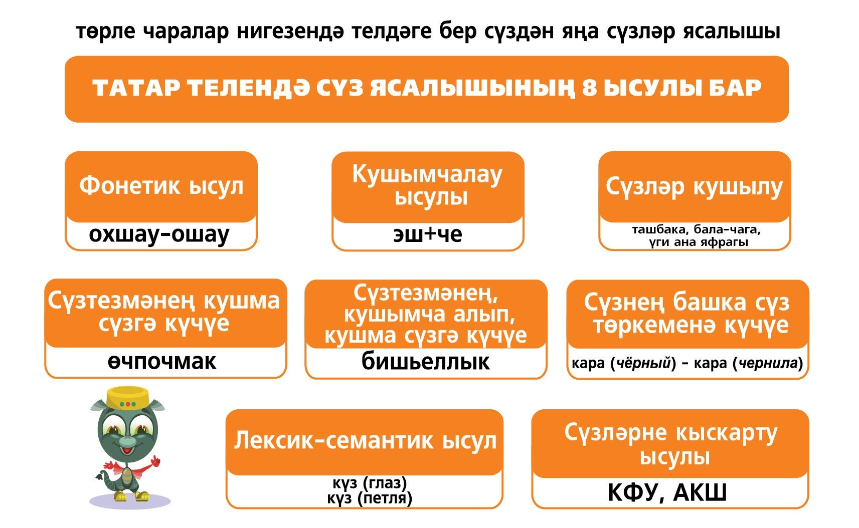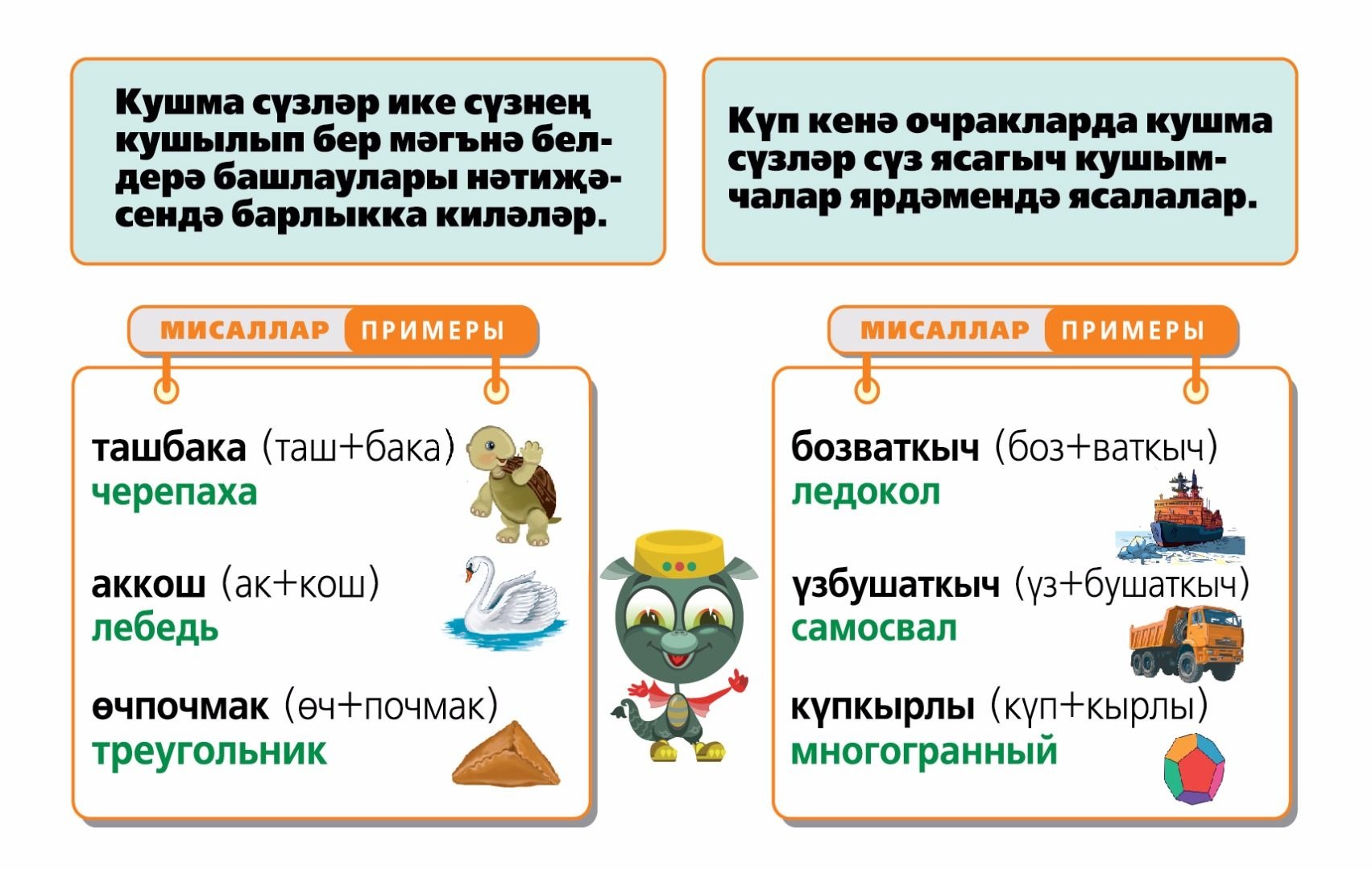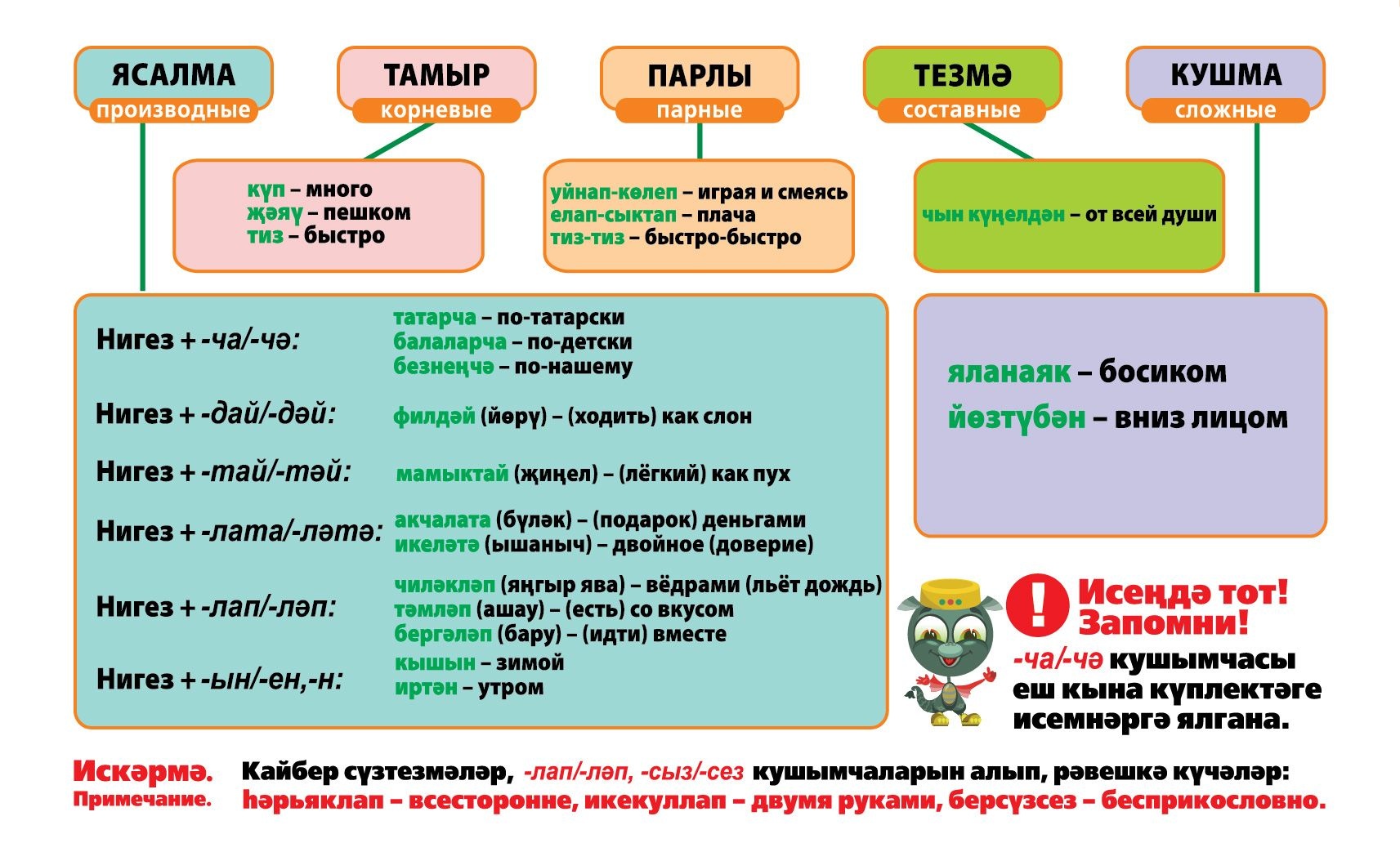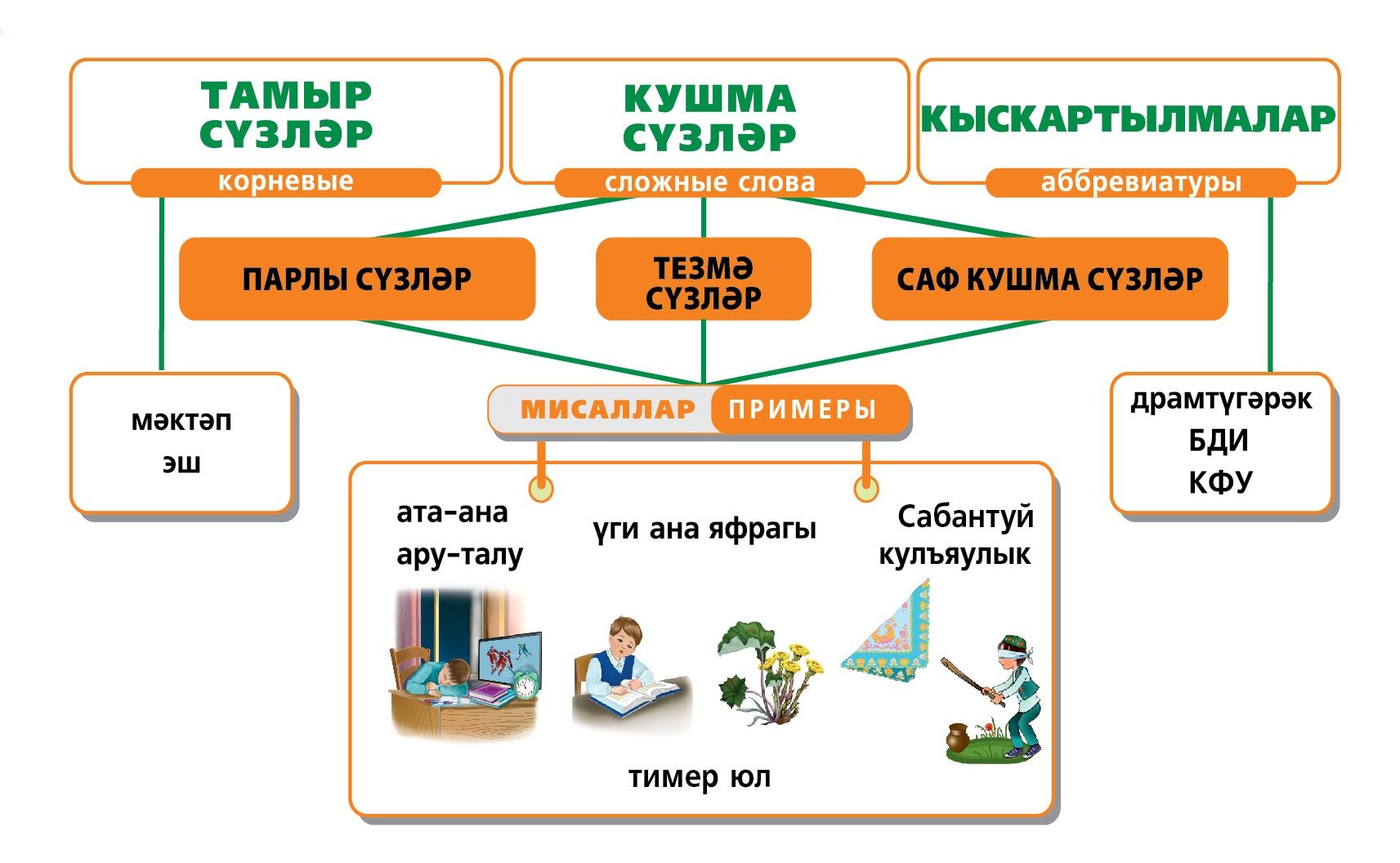 Сүз ясалышы Сүзләрнең структур яктан төрләре Тамыр һәм кушымча Исемнәр ясалышы Фигыльләр ясалышы Сыйфатлар ясалышы Рәвешләр ясалышы Кушма сүзләр Возвратиться в раздел Сүз ясалышы Сүзләрнең структур яктан төрләре Тамыр һәм кушымча Исемнәр ясалышы Фигыльләр ясалышы Сыйфатлар ясалышы Рәвешләр ясалышы Кушма сүзләр